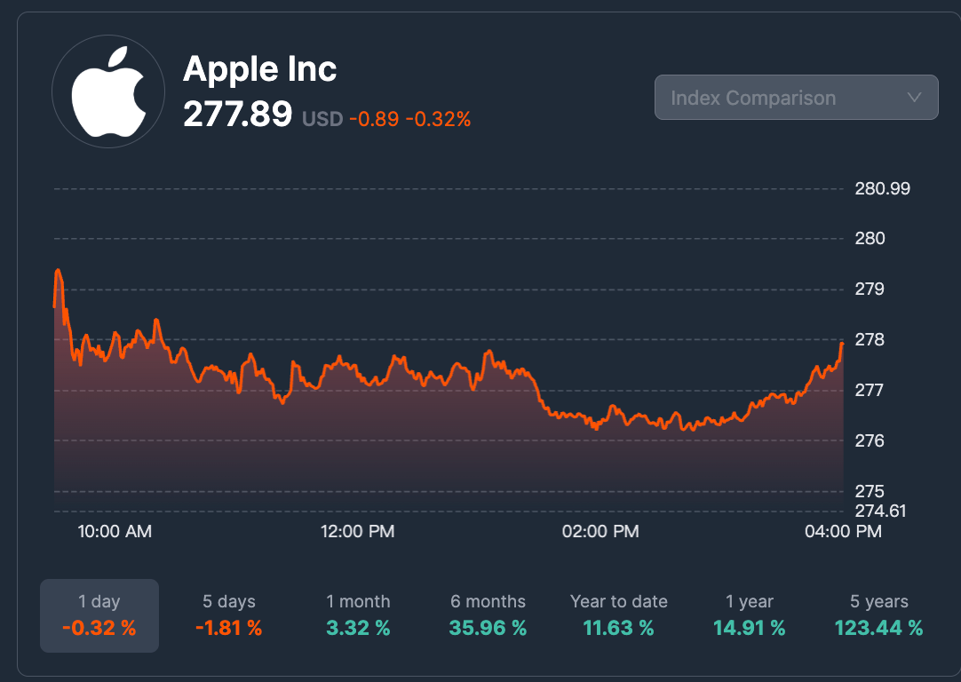 Why it matters: If AAPL is trading at 277.89 and the 52-week high is around 285.00, the stock is trading near its peak. Some investors see this as momentum (strength), while others might fear it is "overbought." Conversely, looking at the long-term performance, seeing a 5 years return of 123.44% confirms that despite daily fluctuations, the long-term trend has been significantly upward. For more on spotting buying opportunities, read how to find undervalued stocks.